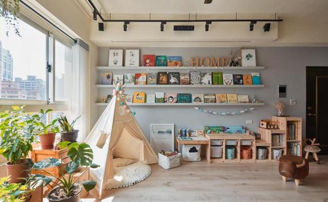这种儿童房设计不仅受欢迎,而且很漂亮用色彩来装饰墙面,可以给空间带来活泼的气氛。无论是选择单色的墙漆为主墙,还是拼接色块,都能让空间充满活力,不易落伍。是最简单又醒目的方法!楼梯结合滑梯,房间就是一个
